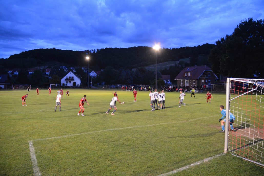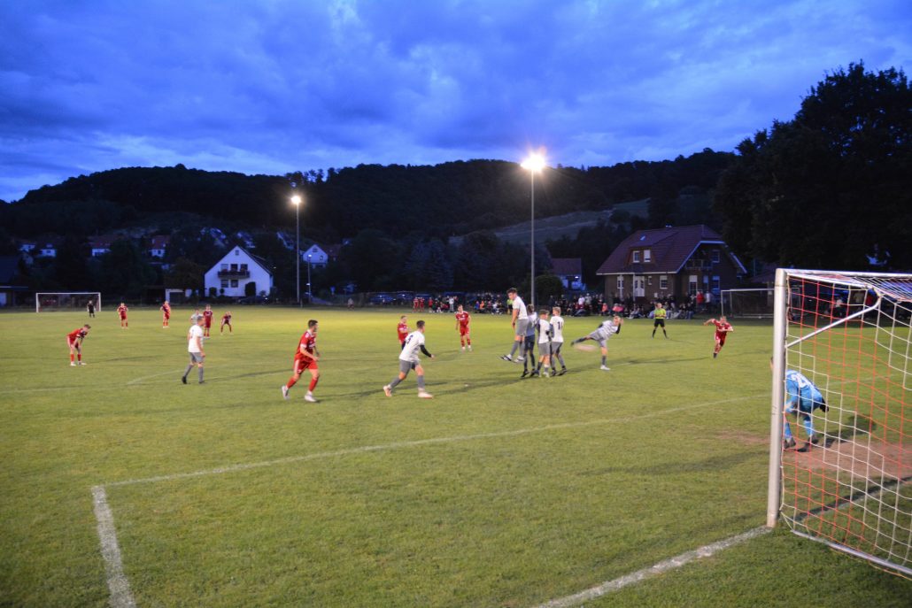 Als Turnierneuling stand die SG Denkershausen/Lgh. im kleinen Finale gegen die heimische SG Solling. Kurz nach dem Anpfiff die erste gute Torchance für die SG Denkershausen./Lgh. durch Joel Hain. Allein läuft er auf SG-Keeper John Wolter zu, schiebt den Ball aber neben das Tor (5.). Im Gegenzug die Einschussmöglichkeit für die SG Solling. Aber der wuchtige Distanzschuss von Steven Engwer geht über die Torlatte (6.). Danach eine weitere Großchance für die SG Denkershausen/Lgh.. Erneut ist es Joel Hain der freie Bahn zum Tor hat, aber er schießt aus spitzem Winkel am langen Pfosten vorbei (13.). Kurz darauf macht es Tim Binnewies besser. Auch er marschiert allein auf SG Torhüter J. Wolter zu und bringt den Ball im langen Eck zum 1:0 unter (17.). Einen erneuten Alleingang auf das Tor der SG Solling durch Joel Hain kann Keeper J. Wolter abwehren (25.). Dann erhöht Tim Binnewies auf 2:0 für die SG Denkershausen/Lgh. Gut angespielt kann er freistehend seine Torchance verwandeln. (26.). SG Keeper John Wolter rückte immer mehr in den Mittelpunkt. Die Torchancen der vor ihm allein auftauchenden SG Denkersausen/Lgh.-Spieler Hain und Binnewies konnte er abwehren (35./38.). In der 40. Minute erhielt freistehend vor dem Solling-Torwart dann Joel Hain den Ball. Den ersten Schussversuch konnte John Wolter im Solling-Tor noch abwehren, war er doch gegen den Nachschuss von Hain machtlos und es stand 3:0. Damit war der Halbzeitstand hergestellt.